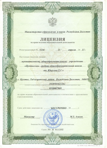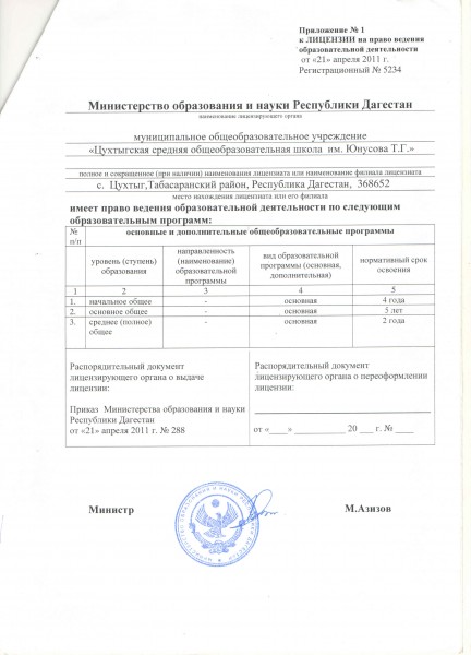 Адрес местонахождения образовательной организации* Республика Дагестан, Табасаранский район с.Цухтыг ул.Школьная №3 368652